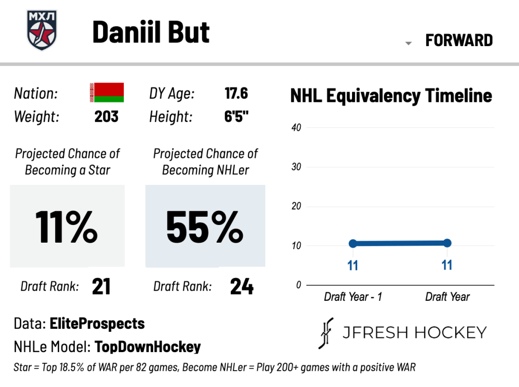 After trading away Sandin, the Leafs may look to replenish their LD prospect pool with Simashev. 6’4 defenceman that can skate, and scouts love that. It would not shock me if he goes higher than this, based on that alone.